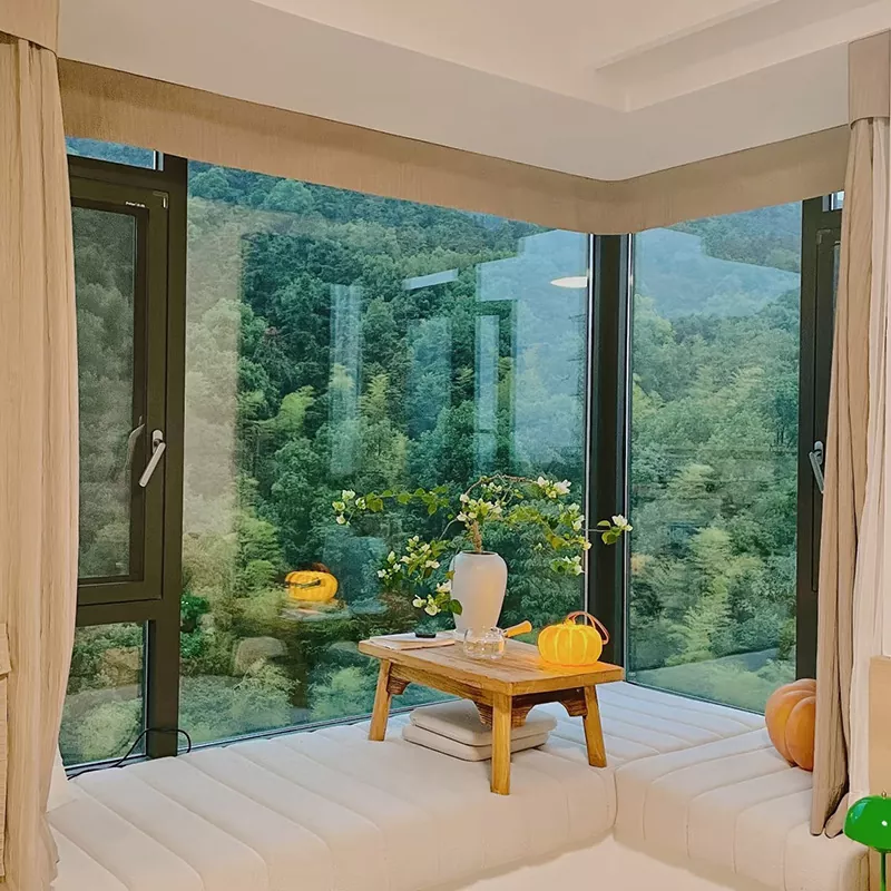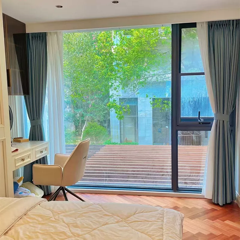 Diseinuak "aluminiozko aleazioko marko anodizatua + beira tenplatua" egitura du, izkinako muntaia integratua duena. banatu estresa uniformeki, egonkortasuna bermatuz marko arina mantenduz. Lehiodun leihoak hornituta daude kanpoko edo ezkutuko aluminiozko aleazioko bisagrak, 90°-ko angeluan irekitzen dira eta itxita dagoenean hertsiki ixten dira. Irristaketa leihoek leunki irristatzen den pista sistema isil bat dute, zarata murrizten eta espazioa aurrezteko, txikientzako aproposa apartamentuak.